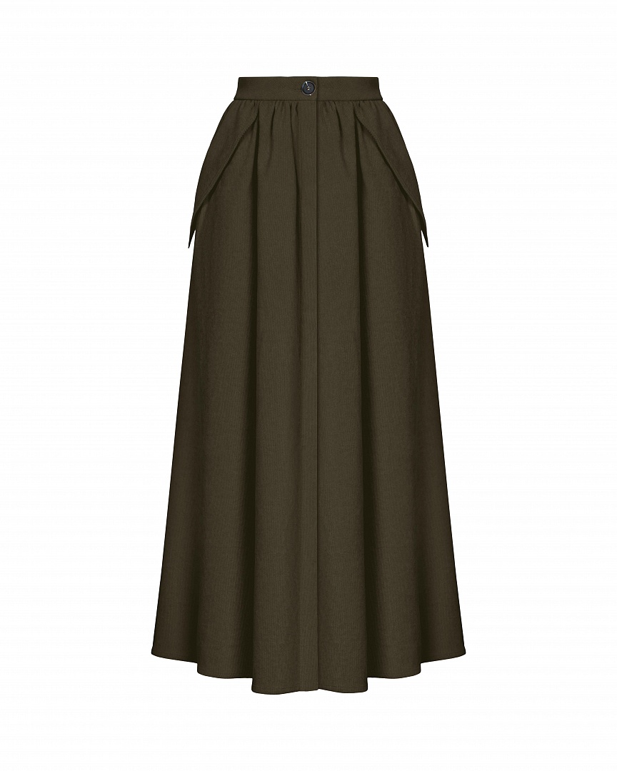 Пышная юбка из вельвета. Сборка по поясу и акцентные карманы. Супатная застежка. *Юбка на подкладке.