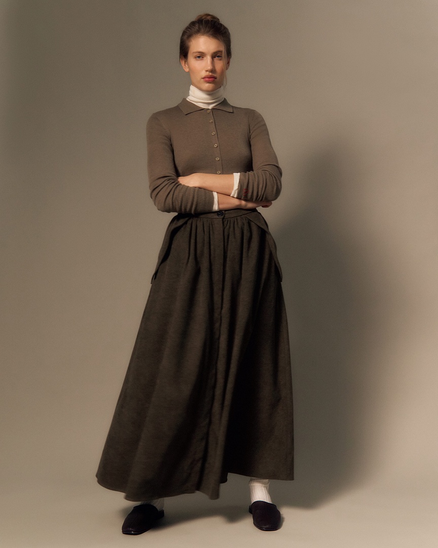 Юбка со сборкой из вельвета
