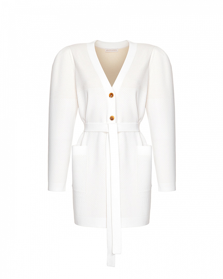 Изделие из коллекции LIMITED EDITION. Кардиган из премиальной итальянской пряжи с добавлением золотого люрекса. Подплечники формы реглан создают мягкую линию плеч и женственный силуэт. В комплекте вы найдете съемный пояс.