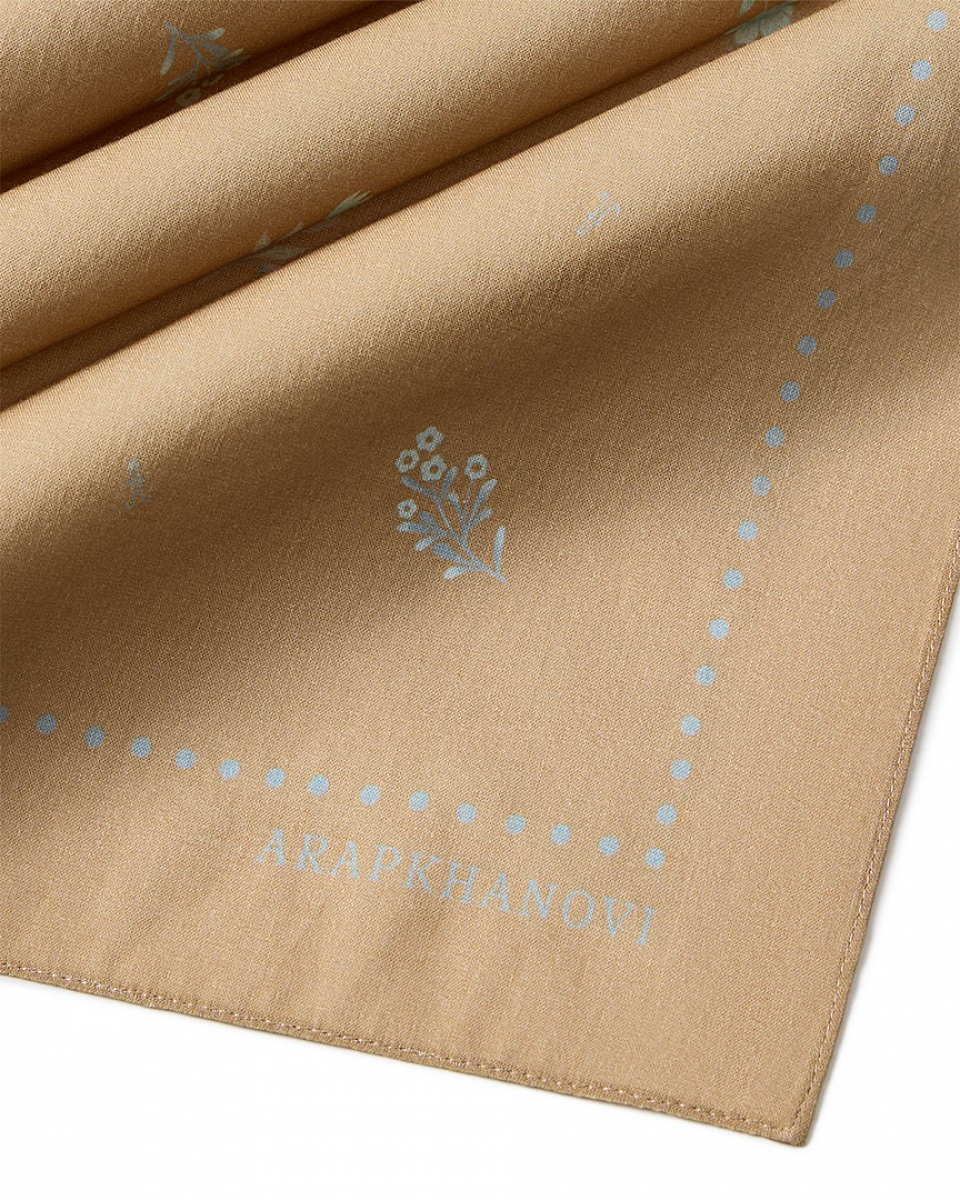 Платок из 100% хлопкового батиста с авторским принтом. На платке изображены цветы, а также знаковый логотип ARAPKHANOVI. Сочетайте с другими изделиями из коллекции Sugar House.