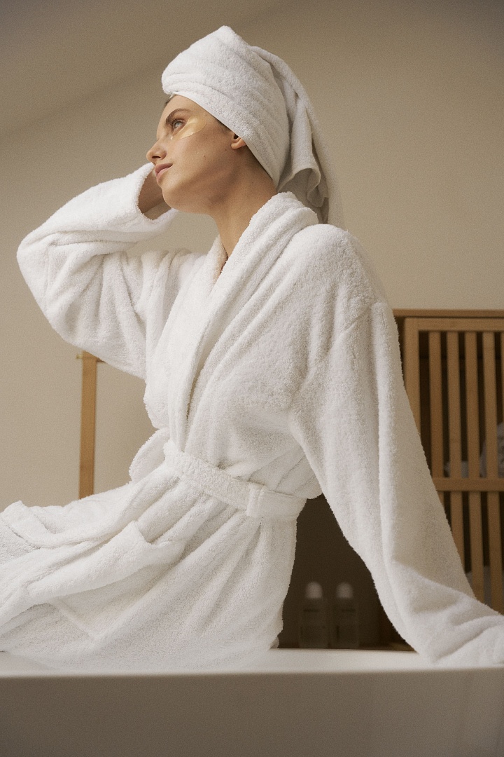 М 1107 Комплект: халат и полотенце махровые (белый)