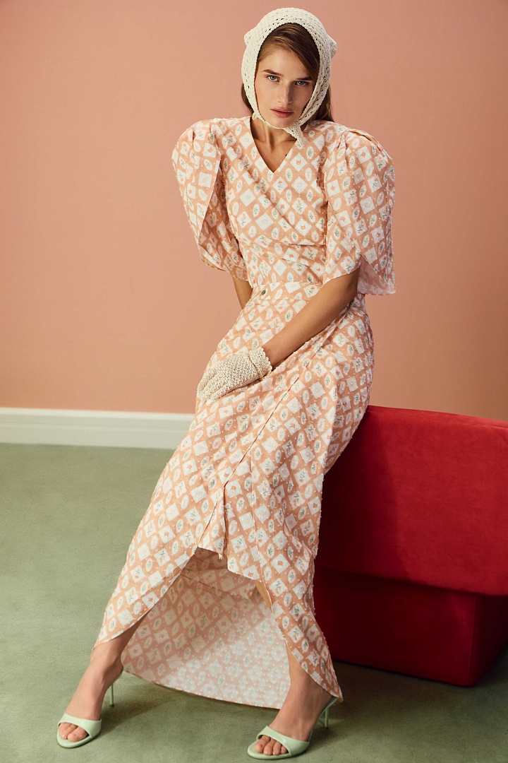 Комплект «Sunday Apron» из трех элементов выполнен из 100% хлопкового батиста с выраженной фактурой. Вдохновленный идеей винтажных нарядов, которые было принято надевать по воскресеньям, комплект включает в себя блузку, юбку на деликатной ажурной резинке и юбку-баску на пуговицах. *Комплект является частью лимитированной коллекции «Sugar House», разработанной под руководством со-основателя ARAPKHANOVI Луизы Арапхановой.