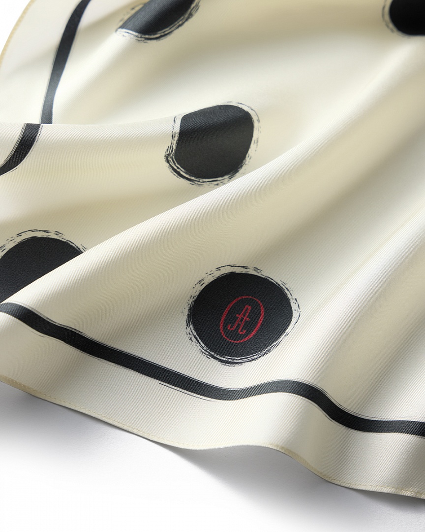 М 1509 Платок из шелкового твилла в горох (молочный)