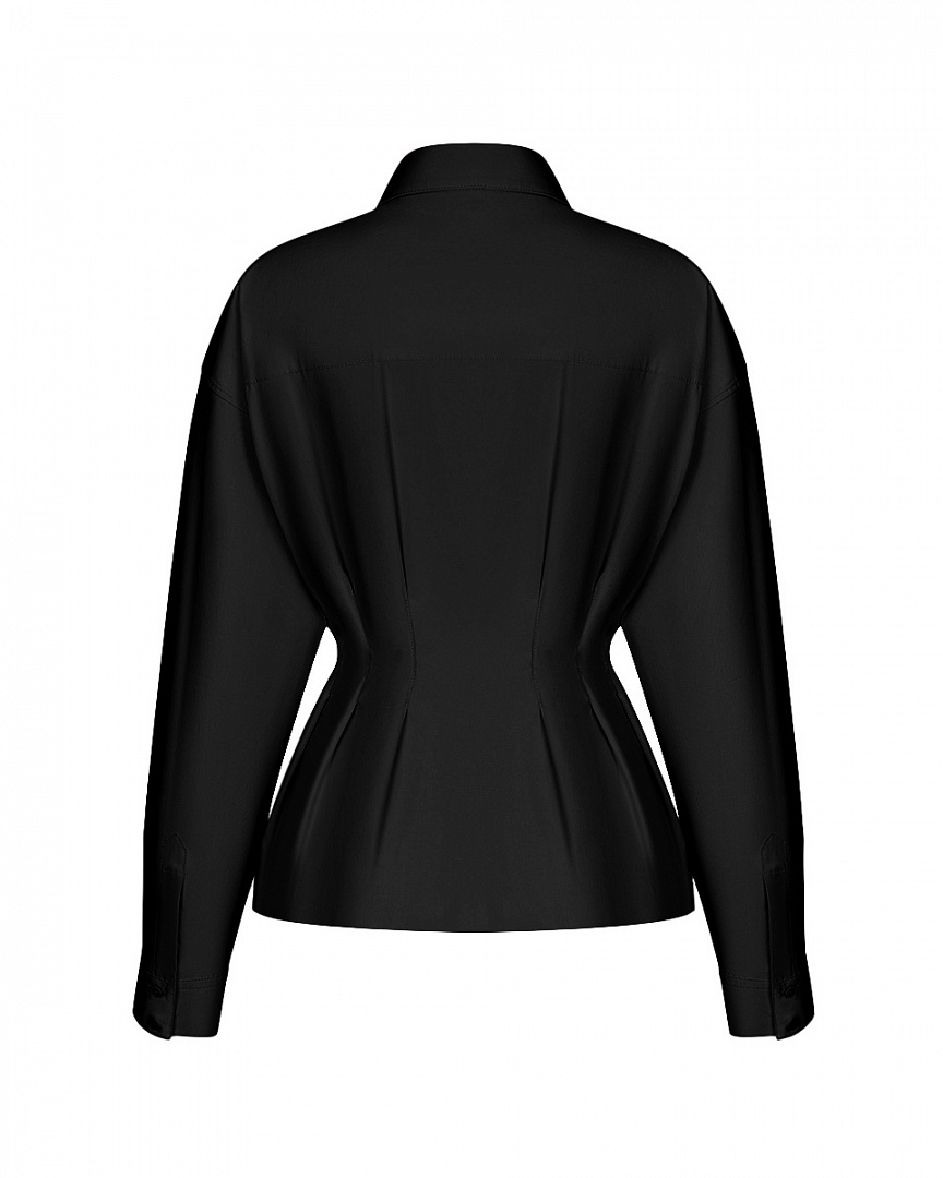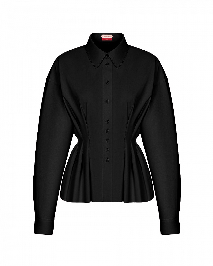М 1596 Блуза с защипами из хлопка (черный)