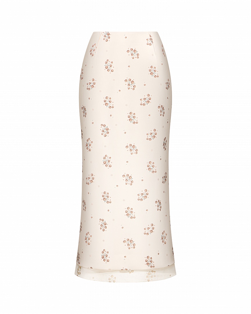 М 1517 Юбка с отлетным подкладом в цветок (бежевый)
