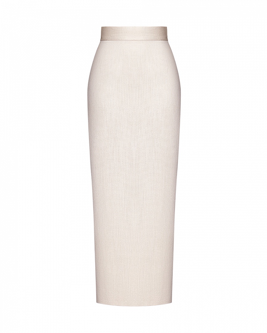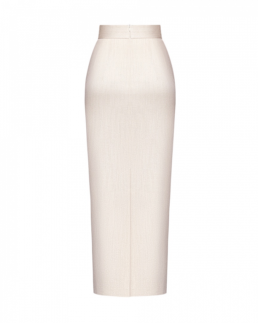 RE-EDITION. Юбка из фактурной костюмной ткани в нежном молочном оттенке с золотыми вкраплениями.
